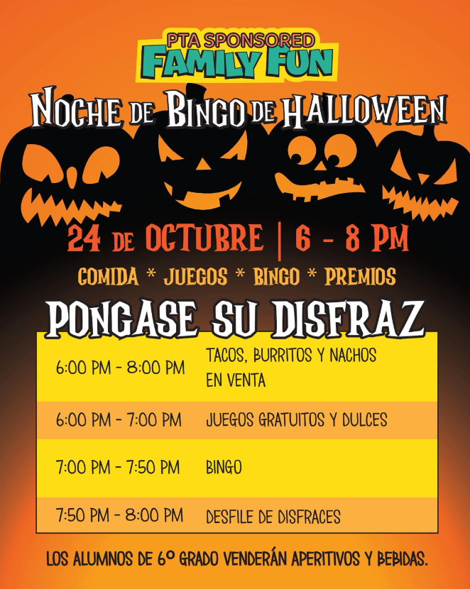 Join us for Halloween Bingo Night this Friday, Oct. 24 from 6–8 PM! 👻 🎃 Get ready for a Spooktacular night of fun! Join us for Halloween Bingo Night on Oct. 24 from 6–8 PM! 👻 Come in costume for food, games, prizes, and a costume parade!